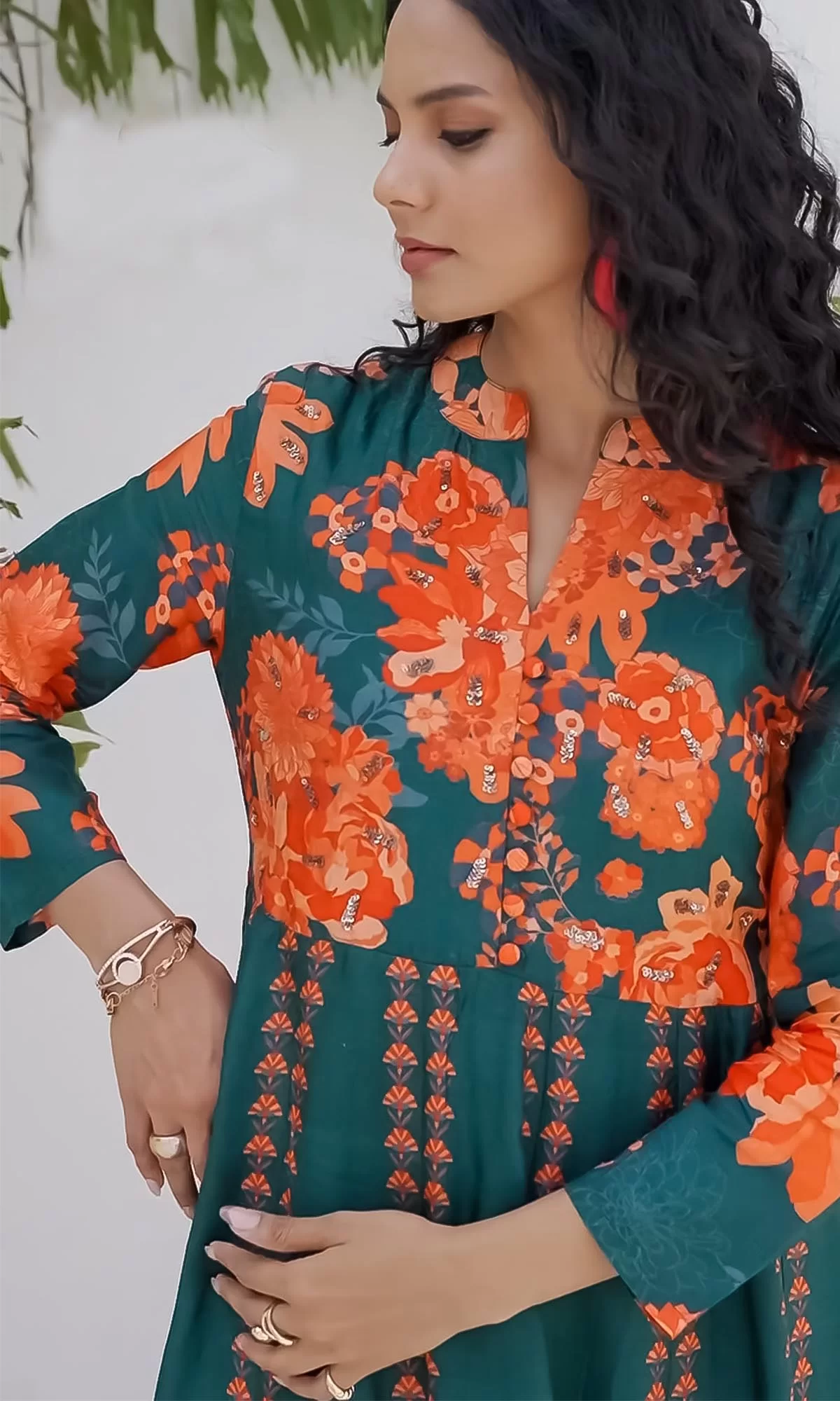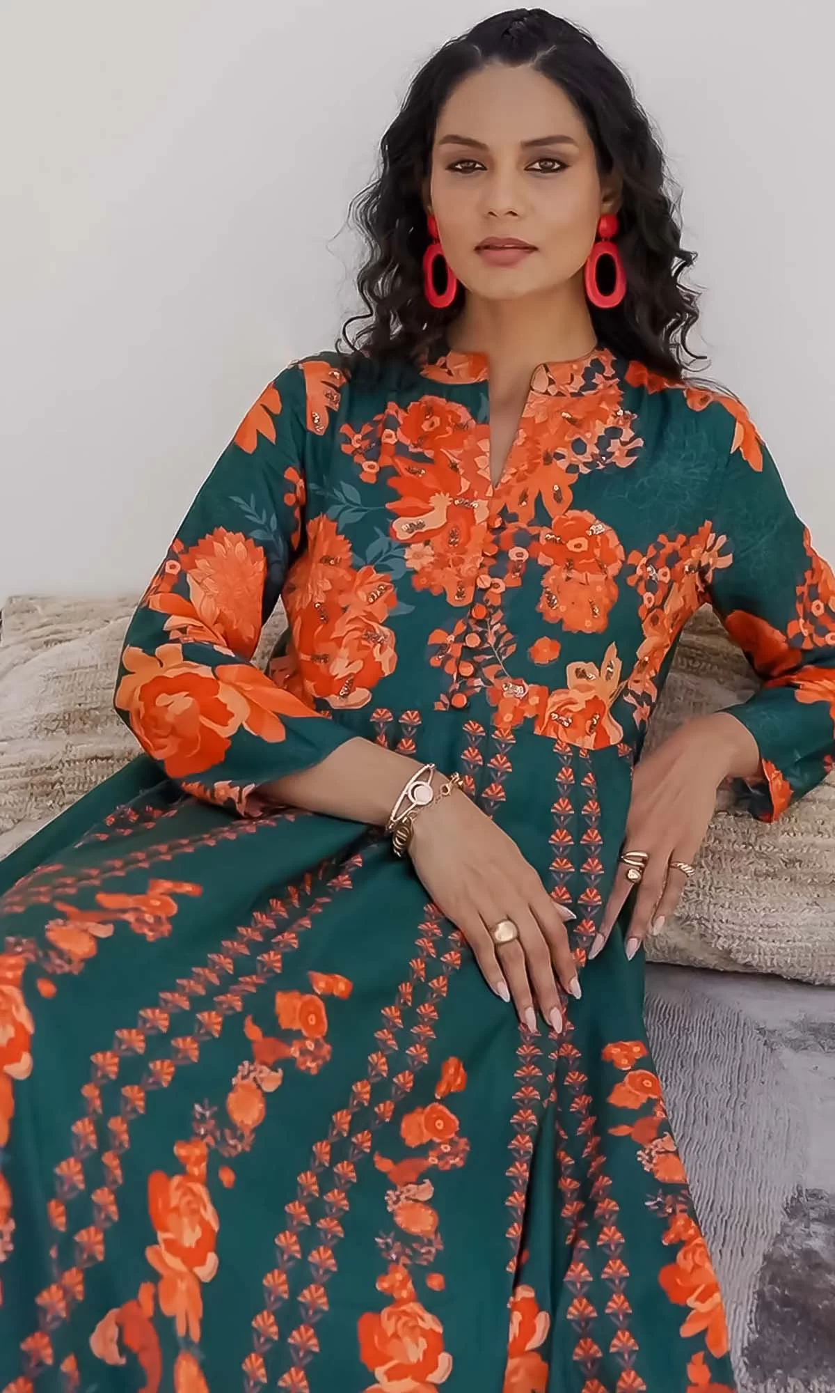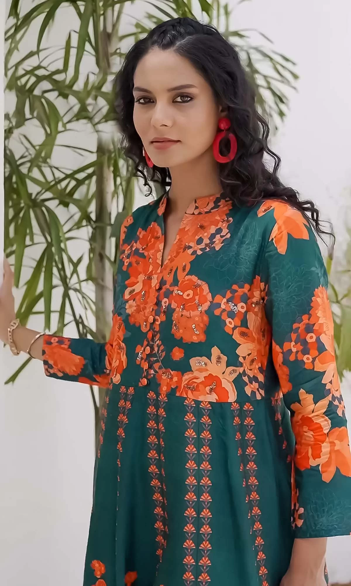 - Color Combination: Deep green base with vibrant orange floral patterns for a striking contrast.