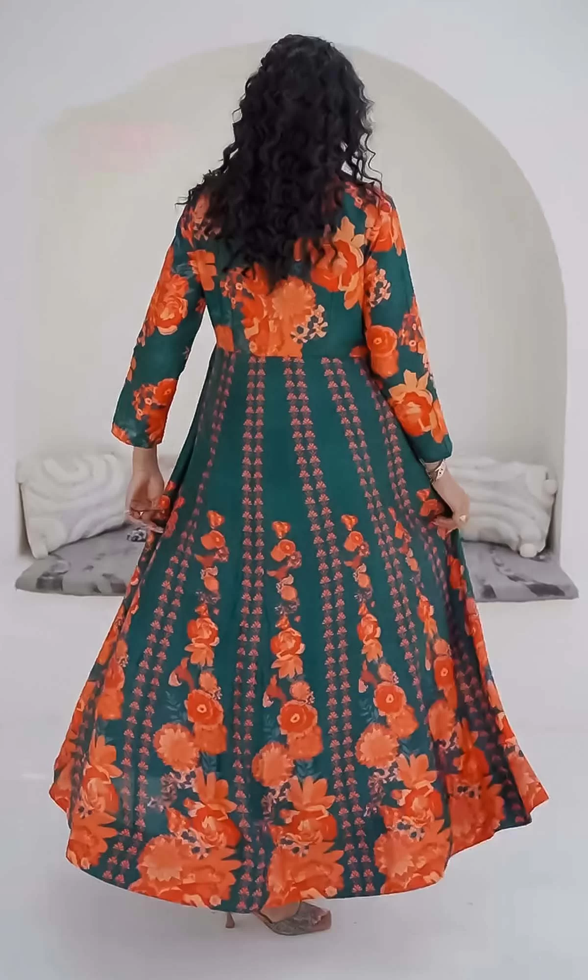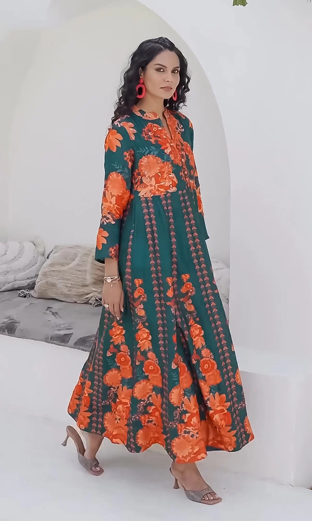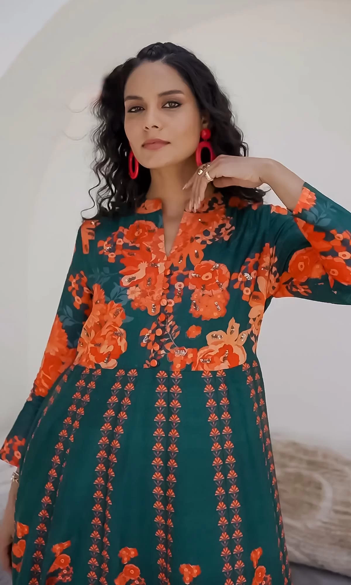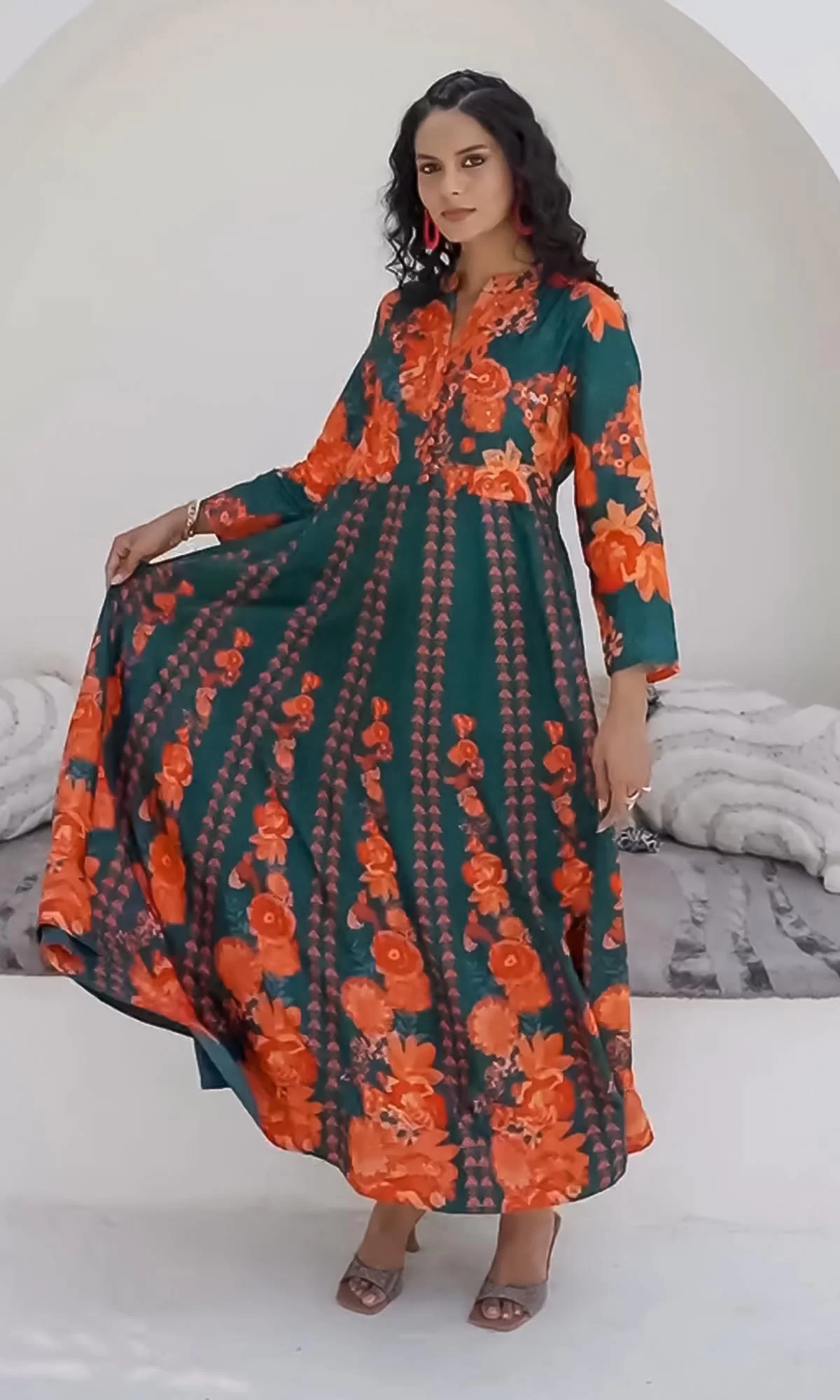 - Color Combination: Deep green base with vibrant orange floral patterns for a striking contrast.