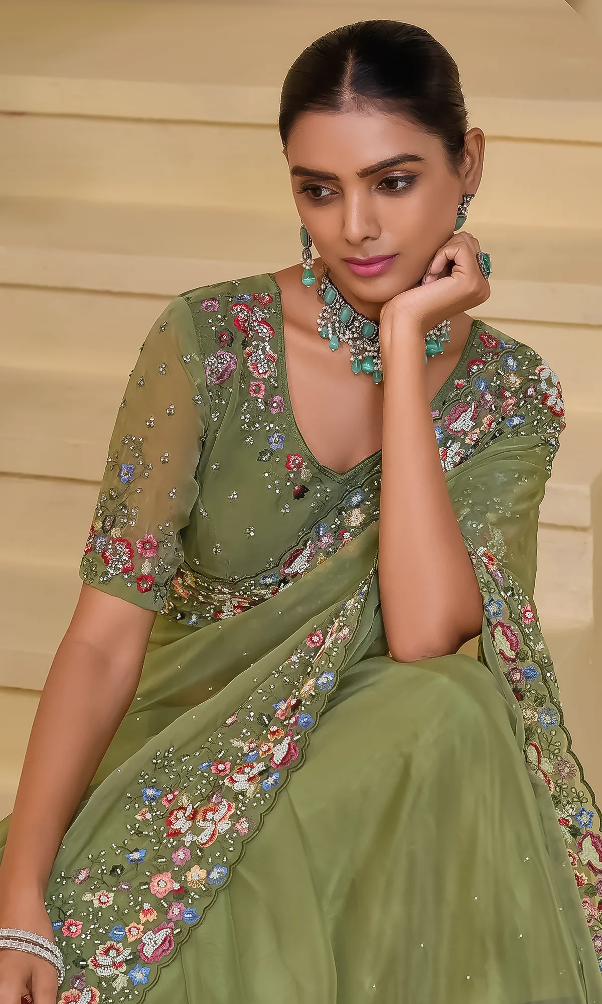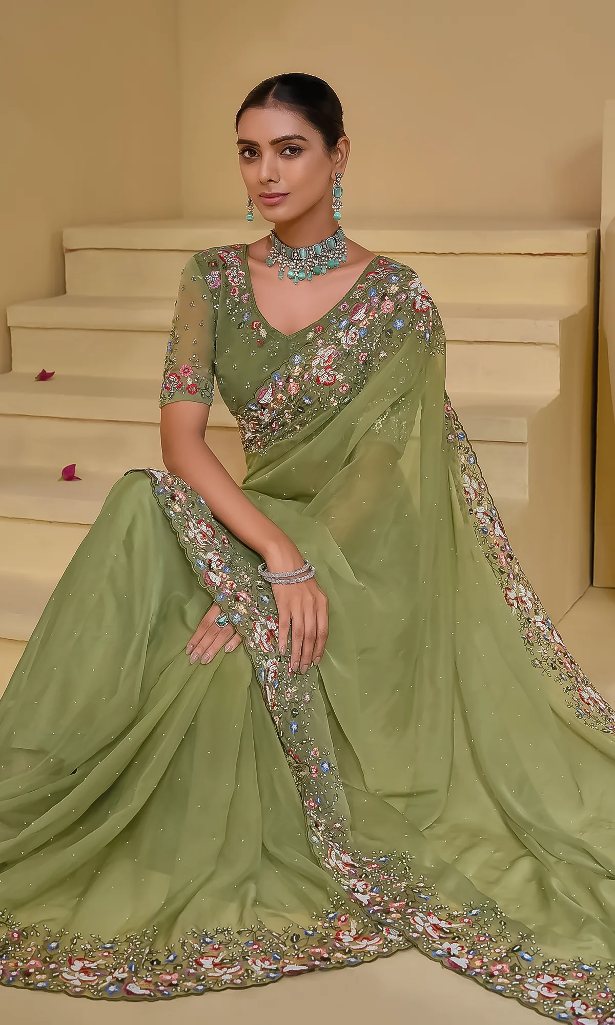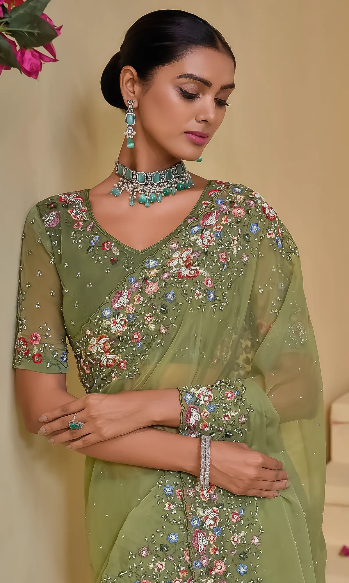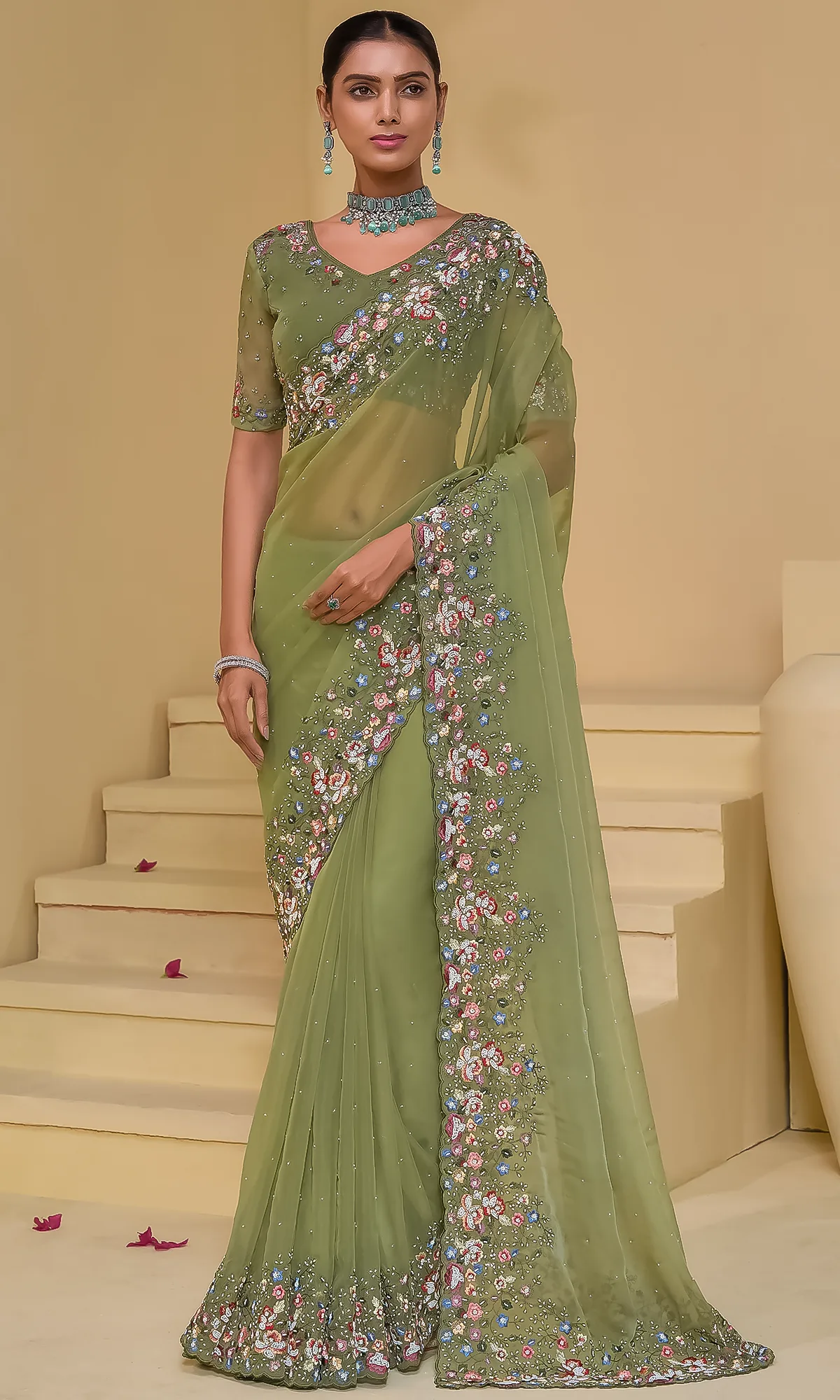 - Blouse: Matching blouse with embroidery